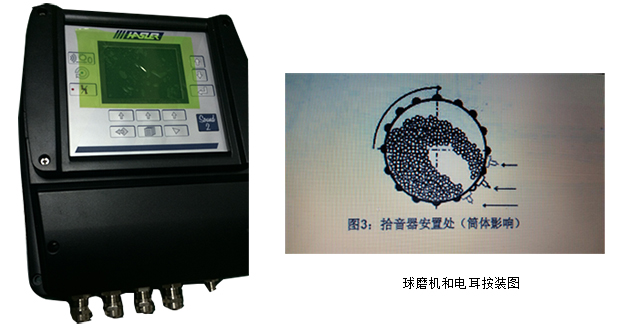 Sound 1电耳用于检测球磨机噪音。球磨机噪音强弱根据物料及球磨机装料量而变化。电耳由高灵敏度传声器组成,它安装在球磨室附近,接近钢球的碰撞点部位。传声器的海绵保护层位于两排螺栓之间,尽量靠近磨机壳体。后面4-5cm为传声器头,由覆有薄的塑料膜细网络的海绵层保护。因此,嵌在海绵层内的传声器与厂区内干扰噪音隔绝。保护网防止粉尘进入,因为粉尘堆积将影响电耳的灵敏度。